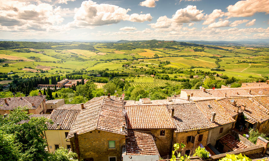 Today, continue your Italian journey through the Tuscan countryside to Siena. On arrival, enjoy a walk through the narrow cobbled streets to Piazza del Campo with your tour leader, where the annual Palio horse race takes place. See the 14th century Town Hall with its slim Mangia Tower and afterwards, the hilltop Cathedral. In the afternoon continue to Montepulciano, a medieval town of rare beauty. The city, full of elegant Renaissance palaces, ancient churches, charming squares and hidden corners, boasts vast panoramas of the wonderful Val d'Orcia and Val di Chiana Valleys that surround it. It is also surrounded by vineyards and is well known for its red wine, “Rosso di Montepulciano”. Afterwards continue onto Chianciano Terme, a famous thermal baths destination.
