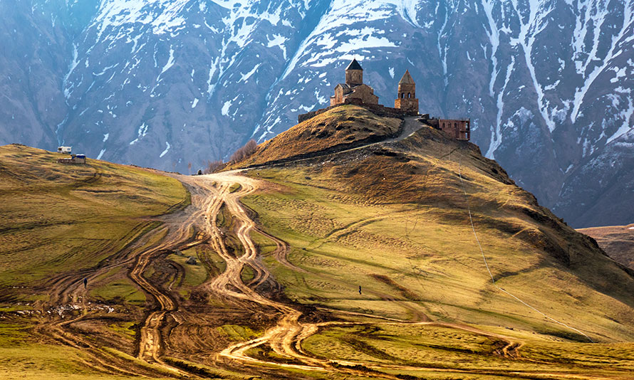 After breakfast, set out to explore the majestic Caucasus Mountains. Travel to Kazbegi, centre of the Khevi Province in the Stepantsminda district. The striking landscapes of Khevi are dominated by alpine meadows dotted with beautiful rhododendron, mountain passes and waterfalls, along with Mount Kazbek, an ice-capped dormant volcano. En-route to the Khevi Province, you will see Jvari Pass, a high mountain cross pass at an elevation of 2379m above sea level on the southern slopes of Caucasus Mountain, in between Georgia and Russia. During your adventures you will make a few stops to taste local mineral water before stopping in Kazbegi. Here you will board a 4x4 vehicle, which will take you up to Gergeti Mountain, where Gergeti Holy Trinity Church - built in the 14th century - acts as a popular waypoint for trekkers in the area. It’s reached by a steep three hour climb up the mountain, or around 30 minutes by jeep up a mountain trail. Afterwards return to Kazbegi and travel onto Darial Gorge on the border between Russia and Georgia. Almost 13kms in length, the gorge features steep granite walls reaching as high as 1,800m in some places. While there, enjoy an easy, short stroll to the beautiful Gveleti Waterfalls. In the evening you will be transferred back to the hotel, where you have the rest of the evening to spend at your own leisure with dinner included.