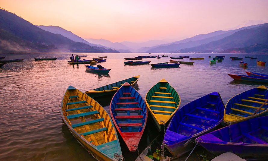 After breakfast, depart Kathmandu for Pokhara. The drive along the Trisuli and Marsyangdi Rivers is incredibly scenic as the road winds out of Kathmandu Valley. Look out for the Ganesh Himal and Manaslu peaks. After around six hours you will arrive into Pokhara, on the foreshore of beautiful Lake Phewa. Both a bustling regional hub and a tourist paradise, Pokhara has Buddhist and Hindu cultural heritage sites, lakes, caves and temples, all overlooked by the immense Annapurna Range. After check in, enjoy the evening at leisure.