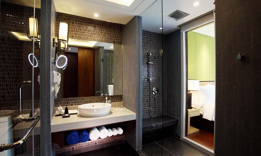 Step from your private balcony to the glistening swimming pool while staying in the spacious 45 sqm Deluxe Pool Access Room. With a 7ft king-size bed, day bed and sun loungers, guests can relax and unwind in chic surroundings with modern facilities and superior services at their fingertips. The elegant bathroom has beautiful intricate tiles, a sleek glass shower wall, double vanity and rain shower.