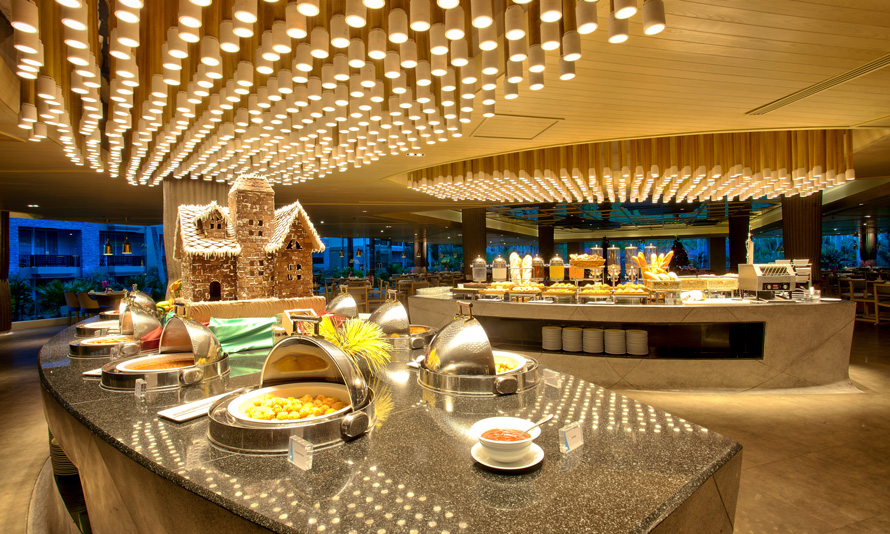 The main dining venue serves breakfast, lunch and dinner in a sophisticated setting affording pleasant views of the lawn and tropical gardens. Each morning there is an extensive international buffet breakfast, a tasty a la carte menu during the day and a buffet banquet at night with flavours from around the world.