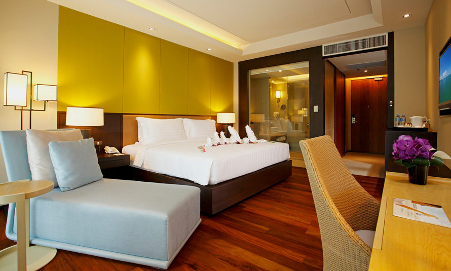 This stylish accommodation with a pool view comes with a super king-size bed or twin beds (queen and single), plus a day bed. Lie back and enjoy the in-room entertainment, top-class amenities and spacious private balcony.