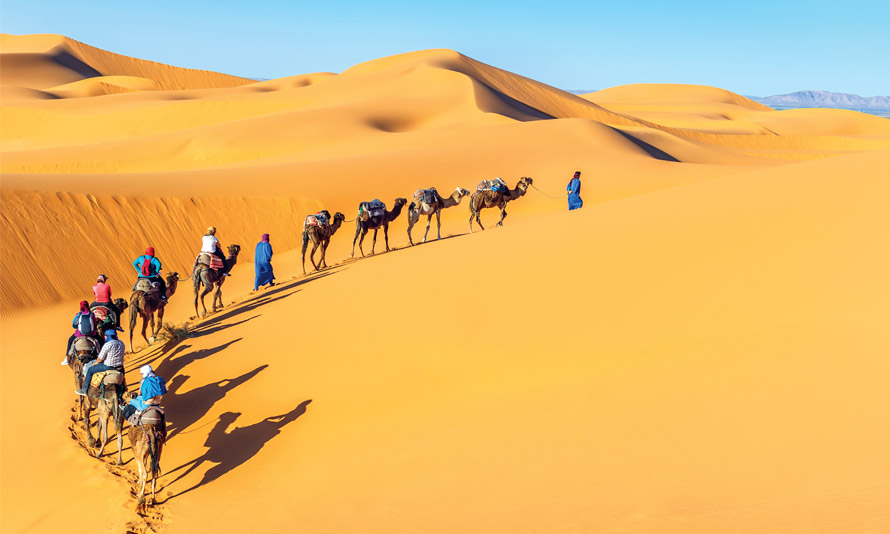 - 11 nights hotel, kasbah and desert camp accommodation