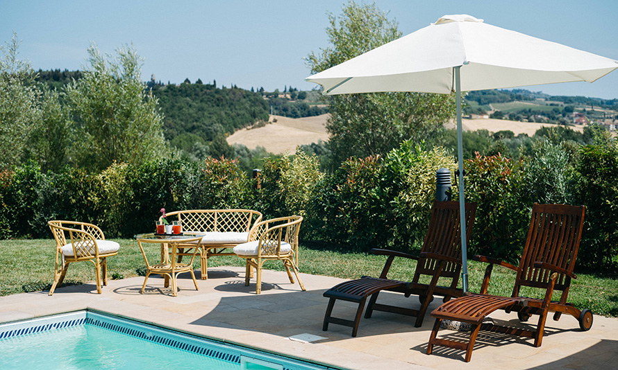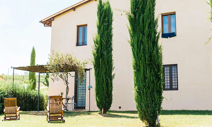 For 8 peopleThis large apartment consists of two levels. On the ground floor, there is a spacious living room with a double sofa-bed, a fully-equipped kitchen, a bathroom with shower and utility room. The stone staircase leads to the upper floor, which has a triple room with a double bed and a single bed, a twin room and two bathrooms with a shower. Outside, guests can enjoy a private garden area, shaded by pine trees, furnished with a table and chairs and surrounded by the Tuscan countryside. Room Size: 90sqm Room Option Valid For: 8 people Max occupancy*: 8 people Bedding configuration: 2 x double beds, 1 x single bed and 1 x double sofa bed