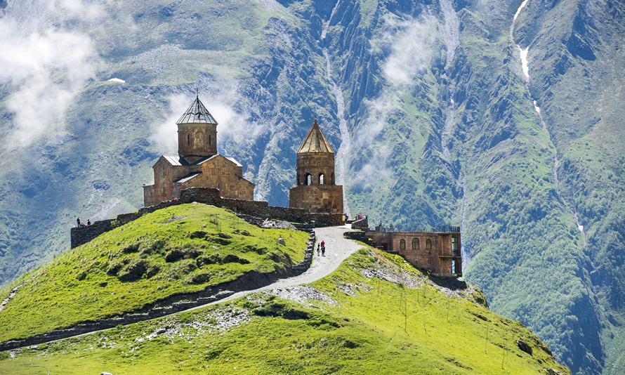 After breakfast, set out to explore the majestic Caucasus Mountains. Travel approx. 1 hour north to the town of Kazbegi, the centre of the Khevi Province in the Stepantsminda district. The striking landscapes of Khevi are dominated by alpine meadows dotted with beautiful rhododendron, mountain passes and waterfalls, along with Mount Kazbek, an ice-capped dormant volcano. En-route to the Khevi Province, you will see Jvari Pass, a high mountain cross pass at an elevation of 2379m above sea level on the southern slopes of the Caucasus Mountains in between Georgia and Russia. During your adventures you will make a few stops to taste local mineral water before stopping in Kazbegi. Here you will board a 4x4 vehicle, which will take you up to Gergeti Mountain, where Gergeti Holy Trinity Church - built in the 14th century - acts as a popular waypoint for trekkers in the area. It’s reached by a steep three hour climb up the mountain or, luckily for you, around 30 minutes by jeep up a mountain trail. Afterwards return to Kazbegi and travel onto Darial Gorge on the border between Russia and Georgia. Almost 13kms in length, the gorge features steep granite walls reaching as high as 1800m in some places. While there, enjoy an easy short stroll to the beautiful Gveleti Waterfalls. In the evening you will be transported back to your hotel, where you have the rest of the evening to spend at your own leisure with dinner included.