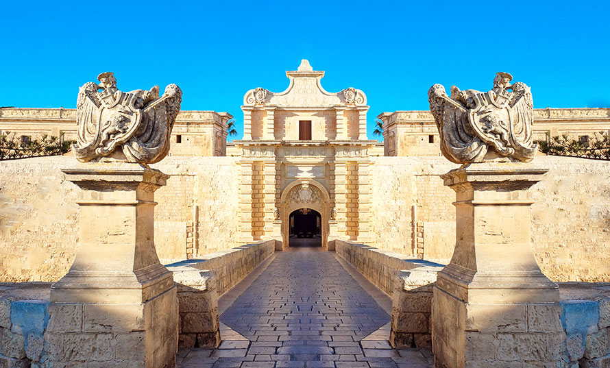 Approximately 10km from Valletta, Mdina is the old capital of Malta whose earliest inhabitants date back to 4000 BC. The fortified and walled town is known as the ‘Silent City’ due to its quiet and narrow streets. Commanding a magnificent view of the Island, Mdina maintained a strategic position due to its central location, the highest point on the island, and its distance from the sea. Currently only city residents are allowed to bring their cars within the city gates, which lead to the calming effect described by many visitors. Mdina is definitely a pedestrian’s paradise.